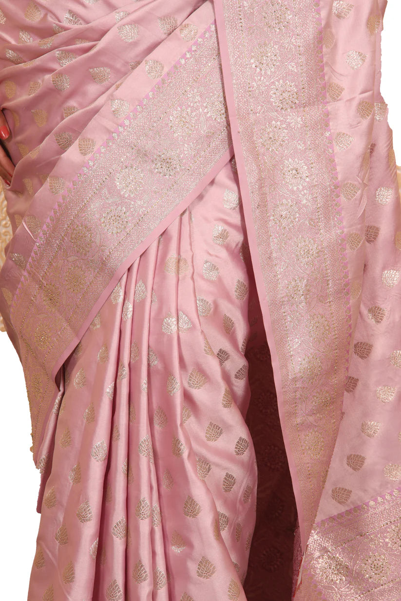 Sold outBaby Pink Golden Zariwork Silk Saree